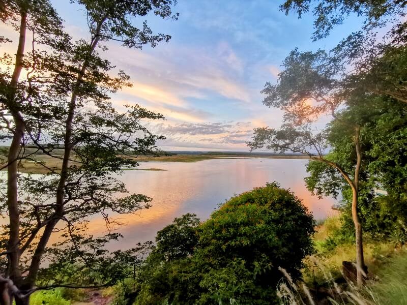 Vom Boot aus sehen wir Flusspferde, Krokodile, Büffel, Kudus und alle Arten von Vögeln. Nachdem die Hitze des Tages vorüber ist, können wir einen atemberaubenden Sonnenuntergang in lebendigen Farben genießen. Wir haben das Gefühl, der Natur besonders nahe zu sein.