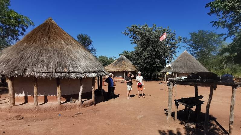 Die Piste ist in hervorragendem Zustand, sodass wir zügig vorankommen. Unterwegs besuchen wir ein traditionelles Tonga-Dorf, genießen immer wieder beeindruckende Ausblicke auf den Fluss und treffen zahlreiche freundliche Menschen entlang der Piste.